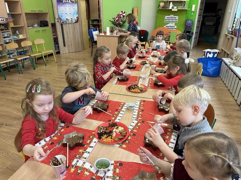 Przygotowują się do niego starannie. Już pod koniec listopada Przedszkolaki pod okiem swoich pań ,,pisały” listy do Św. Mikołaja, w których rysowały swoje marzenia dotyczące upragnionych prezentów. Pilnie uczyły się piosenek i wierszyków.